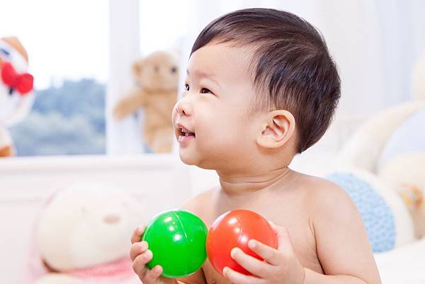 這兩張紅綠球是拍攝的第一組照片,大概已經逗了將近半小時,寬寬才終於展開笑顏,呼~