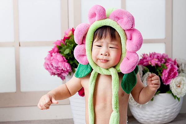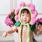 第一眼看到這張囧臉就立馬納入必選名單,因為寬寬實在太愛假鬼假怪的裝這種囧臉了,配那圈花帽就更顯可笑了,噢~是好笑才對。